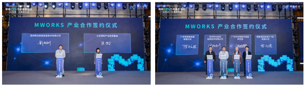 会议现场举行了生态合做签约典礼。同元软控取工业大学、工程大学、西安交通大学、中山大学、姑苏大学、中北大学、理工大学、东北石油大学、江苏大学、齐鲁工业大学和理工大学这全国首批11所高校签订计谋合做和谈,基于MWORKS共建讲授取科研平台。同时进行了MWORKS财产合做签约,同元软控取工业母机财产投资基金开展计谋合做,联袂推进MWORKS正在工业母机财产链的数字化使用;同元取广东许仰曾数字液压研究院 、广州市新欧机械无限公司、新欧液压检测(广州)无限公司签订合做和谈,配合推进MWORKS正在液压财产的数字化使用。