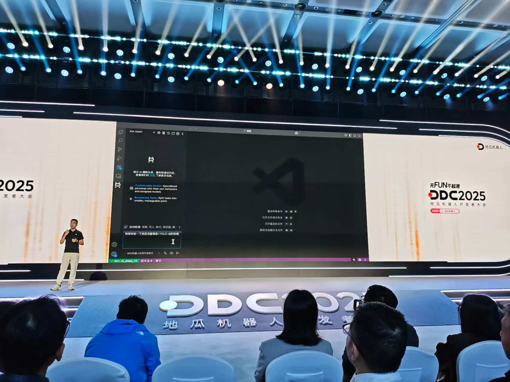 本年以来,正在云鲸逍遥系列扫地机械人,正在维他动力智能陪伴机械狗,以至是正在影石 Insta360 打制的全球首款全景无人机影翎 Antigravity A1上,都有地瓜机械人平台的身影。正在地瓜机械人推出的全新一坐式开辟平台中,RDK Agent 开辟帮手,可实现「一句话完成机械人使用开辟取摆设」。DDC 2025 从题,地瓜机械人开辟者生态副总裁胡春旭就现场秀了一把,Coding Show 环节也变成了 Living Show,「由于不需要写代码」。